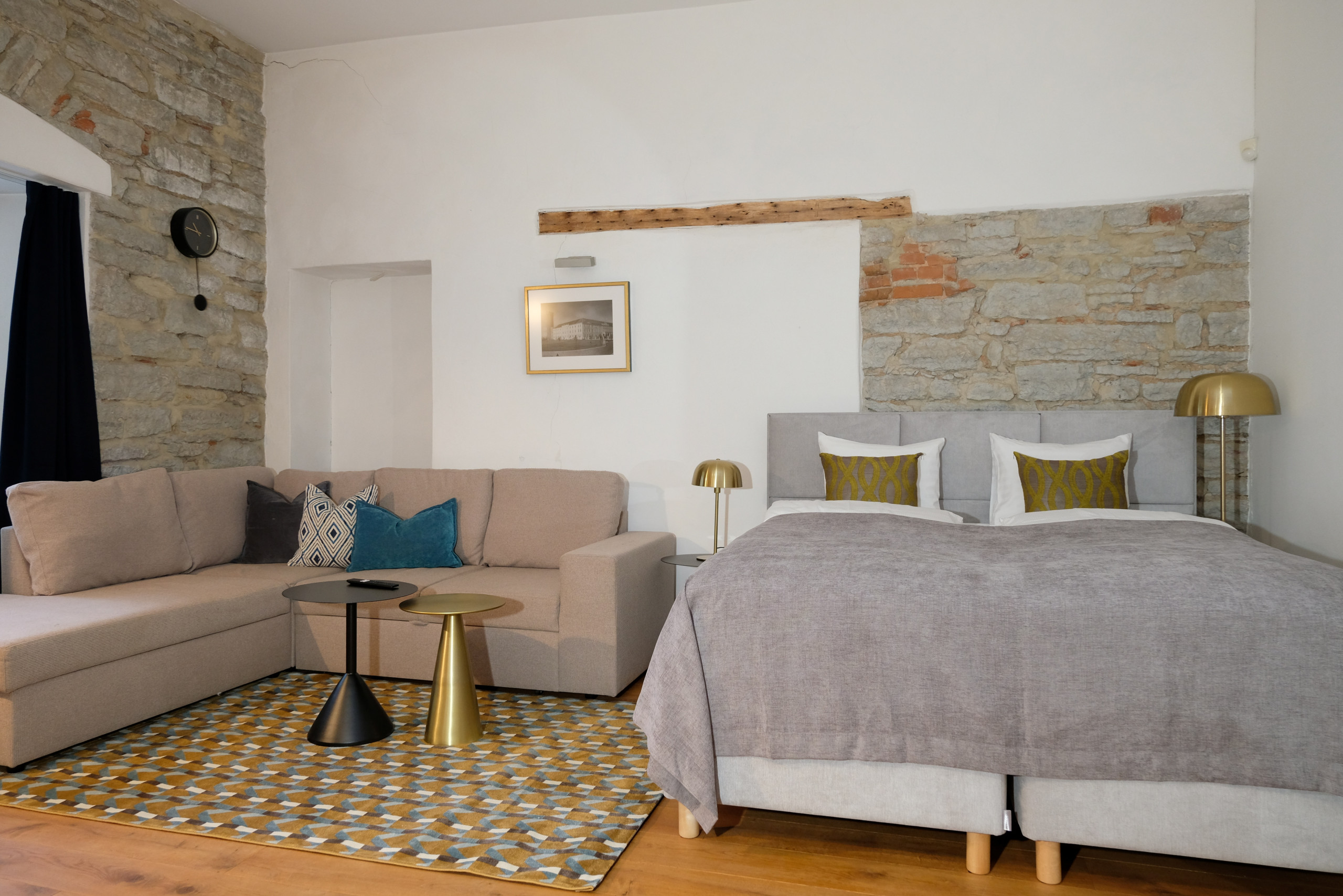 Unwind in the soft queen-size bed (160x210 cm) after a day of exploring Tallinn. Bed linen, towels, and post-stay cleaning are all included in the price. The apartment features one bedroom with a queen-size bed and a living room with the option for a sofa bed, providing flexibility for sleeping arrangements.