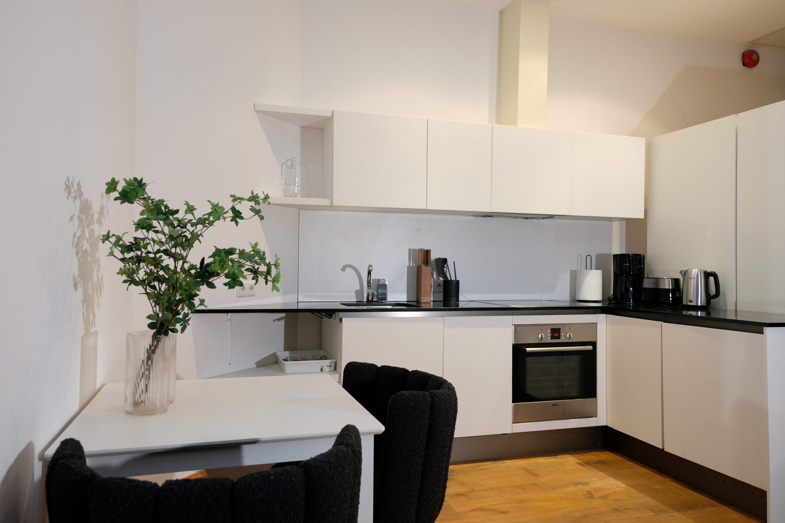 Fully equipped kitchen has everything you need to cook a delicious meal: pots and pans to use, a toaster, a kettle and a coffee machine. The closest supermarket is within 300 m walking distance next to Town Hall square. If you just wish to have a hot drink, then coffee, tea and sugar is already there for you to make some!