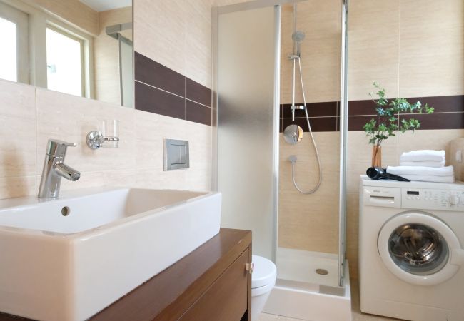 In the bathroom you can find shampoo and shower gel, hairdryer, washing machine and towels are also at your disposal.